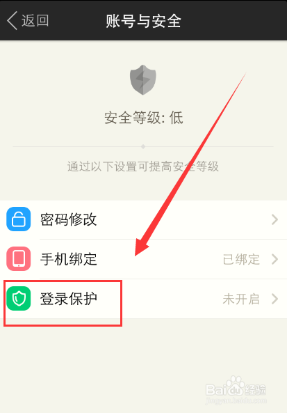 4/7然后在打开的界面,点击打开【登录保护】这个选项。