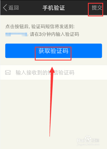 6/7然后在打开的界面,点击【获取验证码】,再输入手机收到的验证码,点击右上角的【提交】按钮。