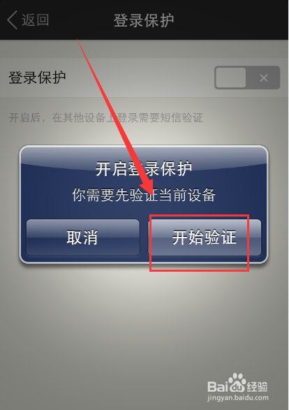 5/7然后再点击页面中的【登录保护】按钮,在弹出的窗口再点击【确定】按钮。如下图所示。