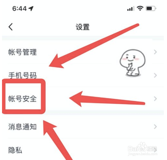 第一步; 点击账号与安全选项