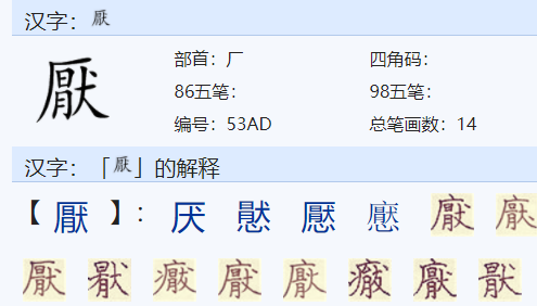 厌恶、讨厌、厌倦、厌战、会厌等。