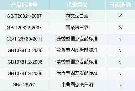 固态法白酒的执行标准根据香型又进行了相应的分类: