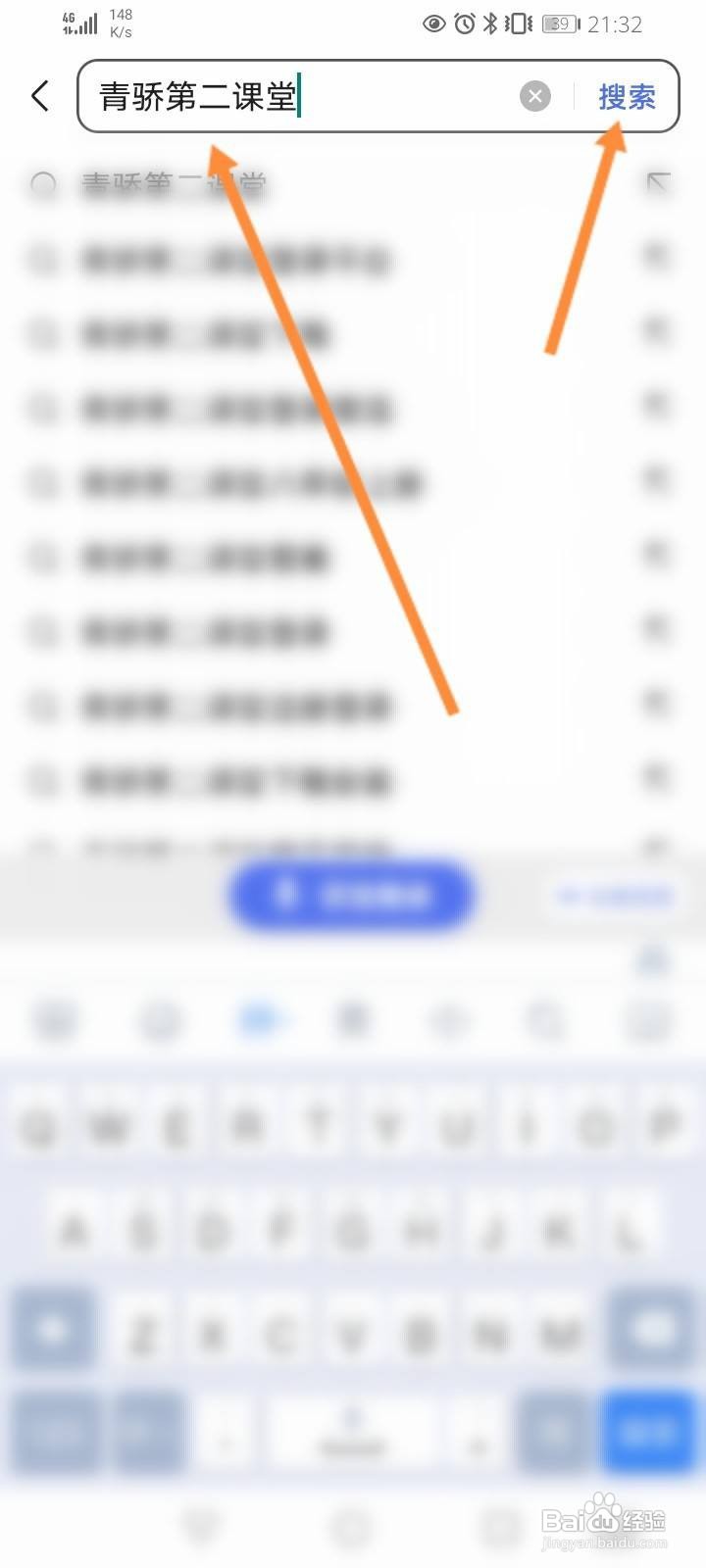 首先打开手机的百度浏览器,输入青骄第二课堂,点击搜索。