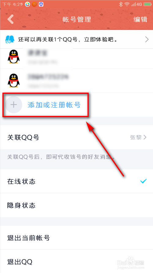 4/6进入账号管理界面,点击下方添加或注册账号。