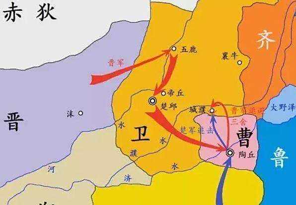 晋文公发兵包围曹国,攻城,战死的人很多。曹军把晋军的尸体陈列在城上,晋文公很担心。听了士兵们的主意,声称“在曹国人的墓地宿营”。