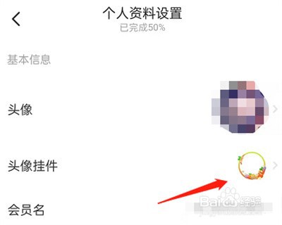 2/4进入到个人资料设置页面后,在其中有一个“头像挂件”的选项,在它的后面点击箭头进入。