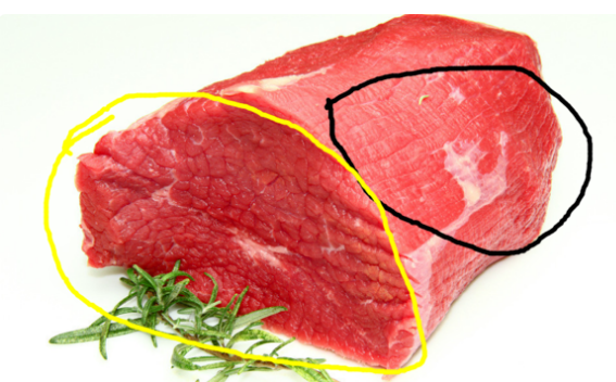 肉的纤维是有纹路的,就像是很多的细线条按顺序扎成的块一样,当你顺着线条下刀切得时候,线条不会被切断,这就是顺切;当你爱丽睡的刀子与这些线条成90度的角度下刀切下去时,线条会被切断,这就是横切。