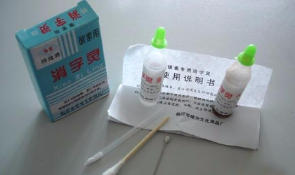 3、如果滴上C液后,纸上仍留有黄褐色斑点(或皮肤衣物被A液染成黄褪色)时,可重新滴点B液,再滴上C液,色斑即可消失。