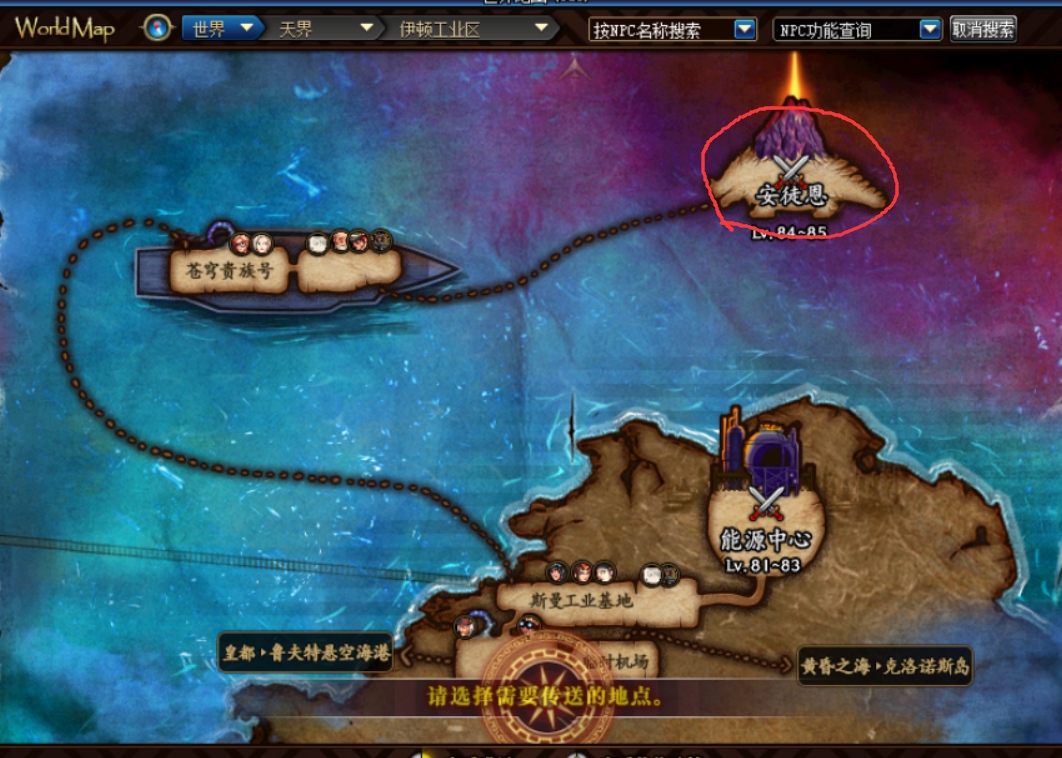要去安徒恩副本,使用瞬间移动药剂后选择伊顿工业区,传送到苍穹贵族号就可以进入副本了。安徒恩副本中总共有6个小副本:黑雾之源、震颤的大地、擎天之柱、能量阻截战、黑色火山、安徒恩的心脏。