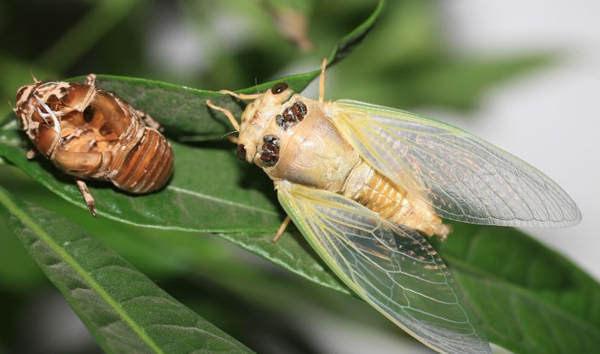 蝉有很多种。它们有相似的形状和不同的颜色。蝉的两只眼睛之间有三个不那么敏感的眼斑。
