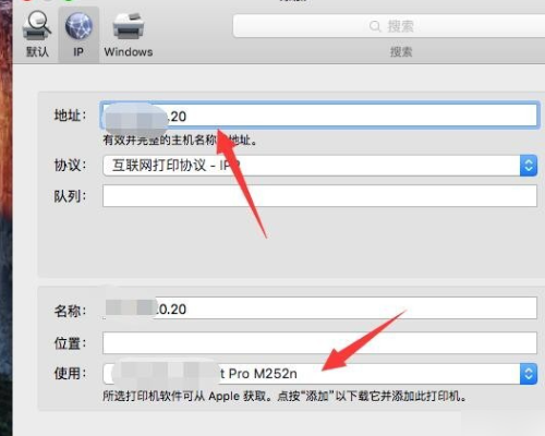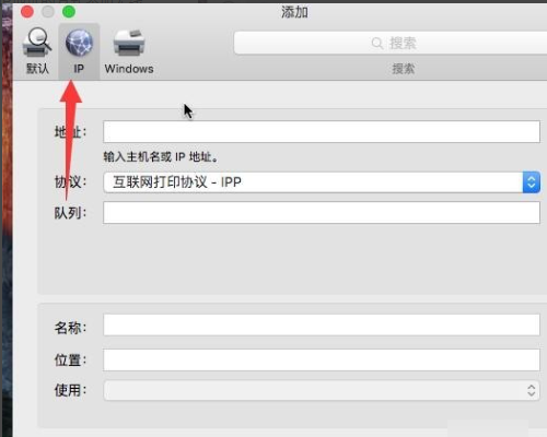 4、点击【IP】可以通过IP地址的方式添加无线打印机。