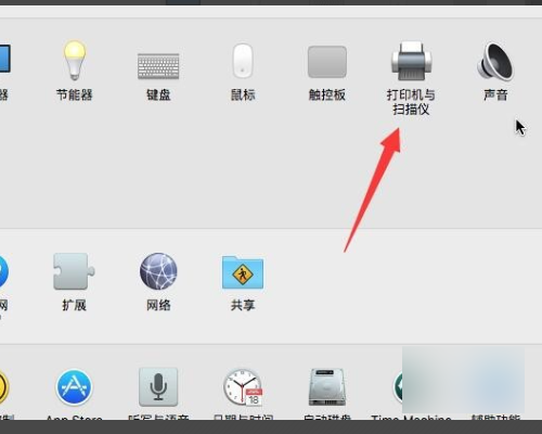 2、进入 偏好设置界面,找到并打开【打印机与扫描仪】图标。