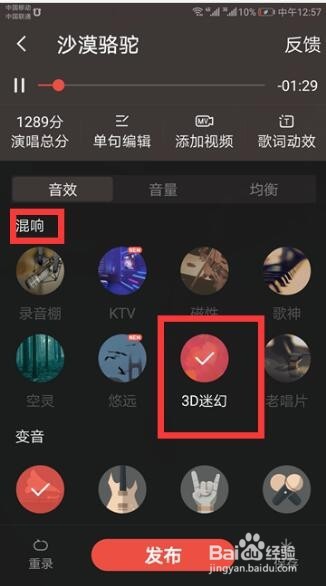 9/13出现的界面中,在音效中找到混响,设置一个自己喜欢的效果