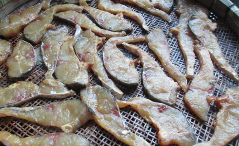 2、把腌过的鱼洗干净,然后切成片,放在通风处吹干。