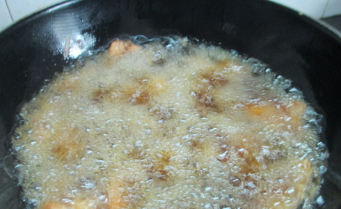5、炸的过程中不要过多的翻到,炸到金黄后取出。
