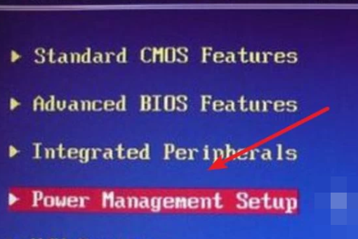 2、进入后,通过键盘的上下箭头选中电源选项,对应英文如图,选中后按一下回车键。