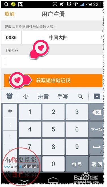 6/7输入手机收到的验证码,完成注册。
