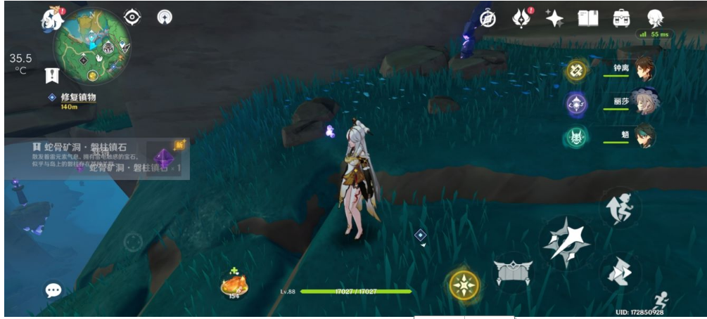4、从蛇骨矿洞内可以看到东北方有一条道路,在道路尽头可以看到蛇骨矿洞·磐柱镶珠,将其获取。