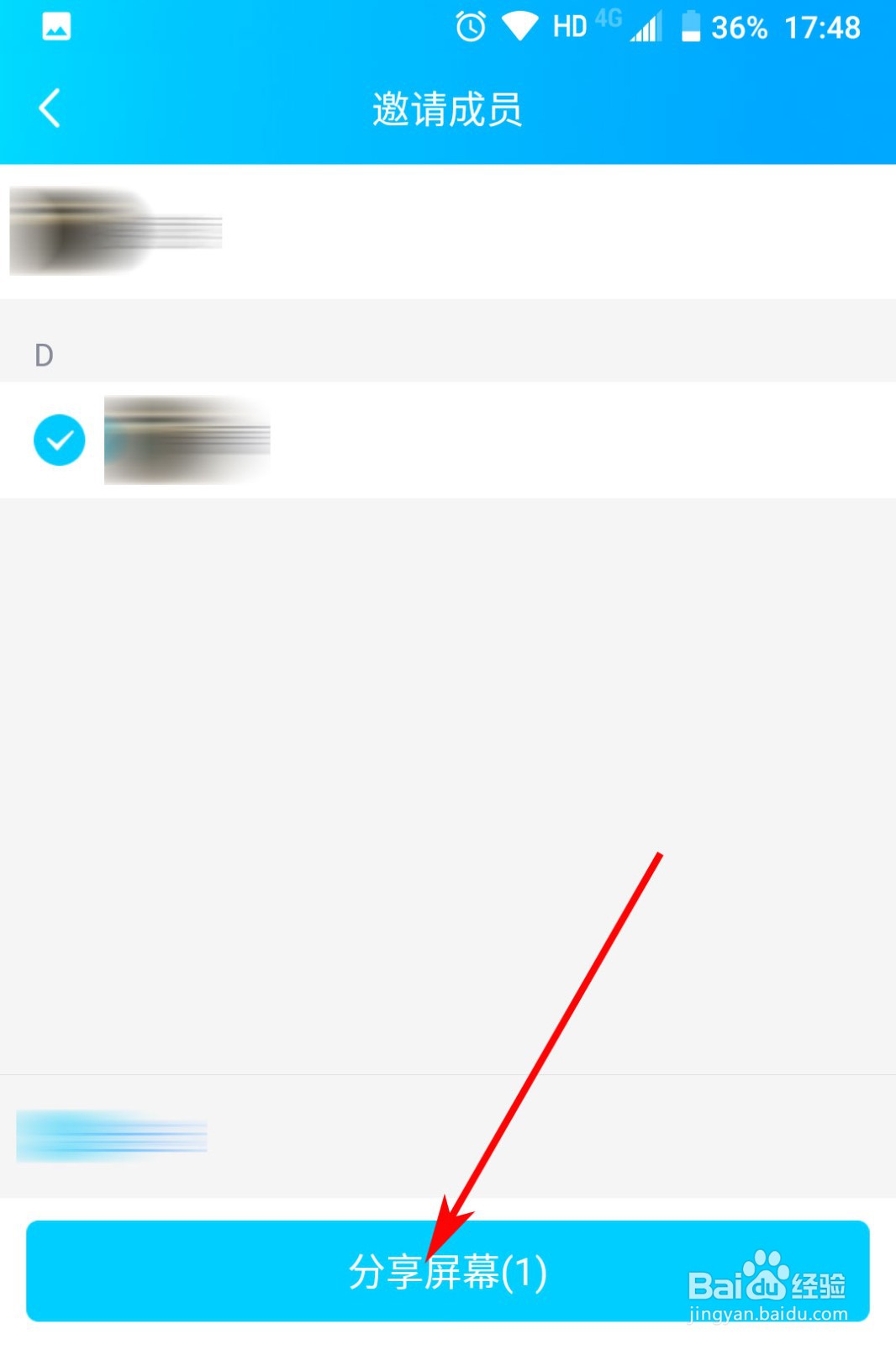 3/4选择需要分享屏幕的联系人后,点击【分享屏幕】