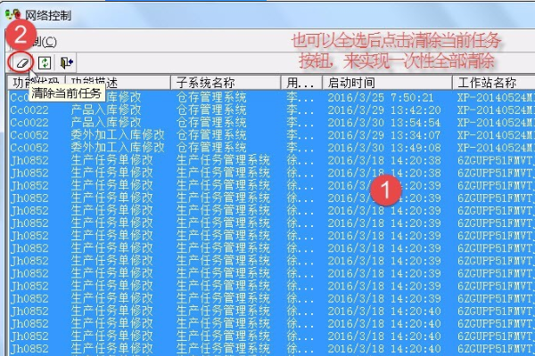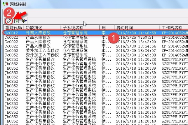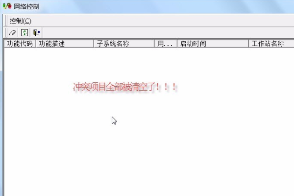 3、网络控制”界面,点击一条冲突记录后,再点击工具栏中的“橡皮擦”图标。