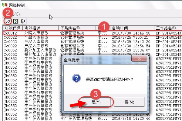 4、接下来会弹出对话框,确认是否要清除所选任务,点击“是”按钮即可,冲突项被清除,操作员可以正常继续操作了。
