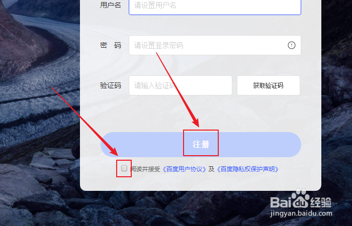 6/6勾选【阅读并接受】,再点击【注册】,则可成功注册百度网盘账号。