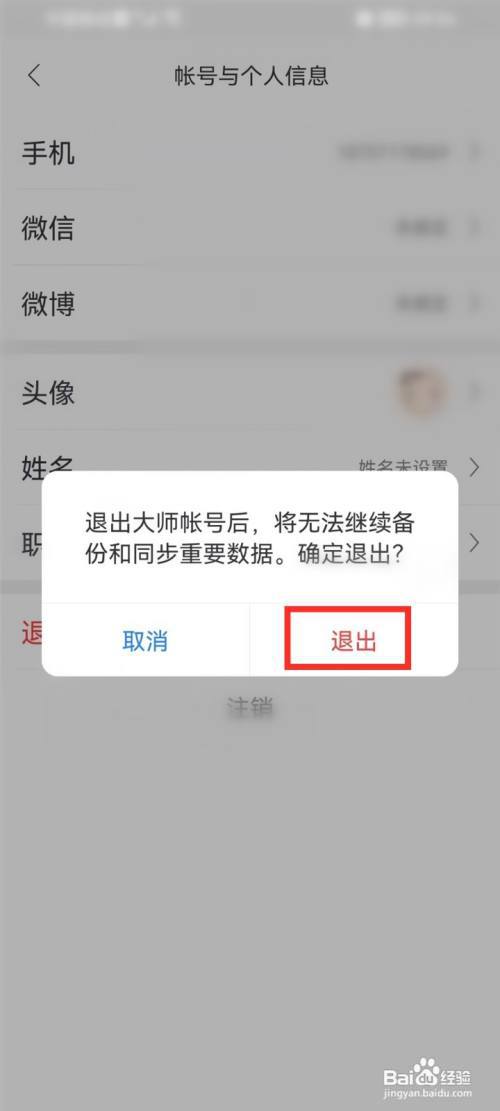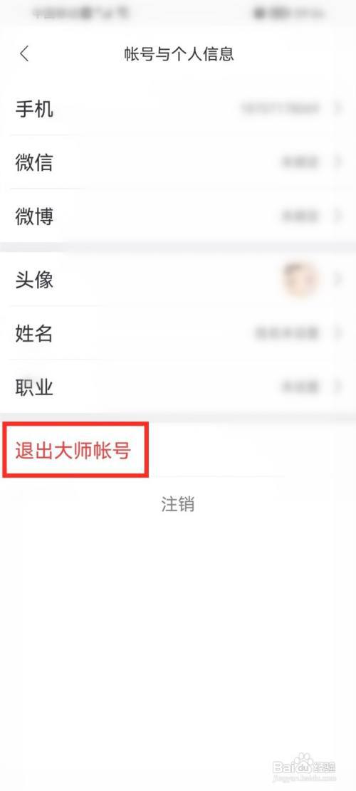 3/4进入到个人信息界面,点击【退出大师帐号】。