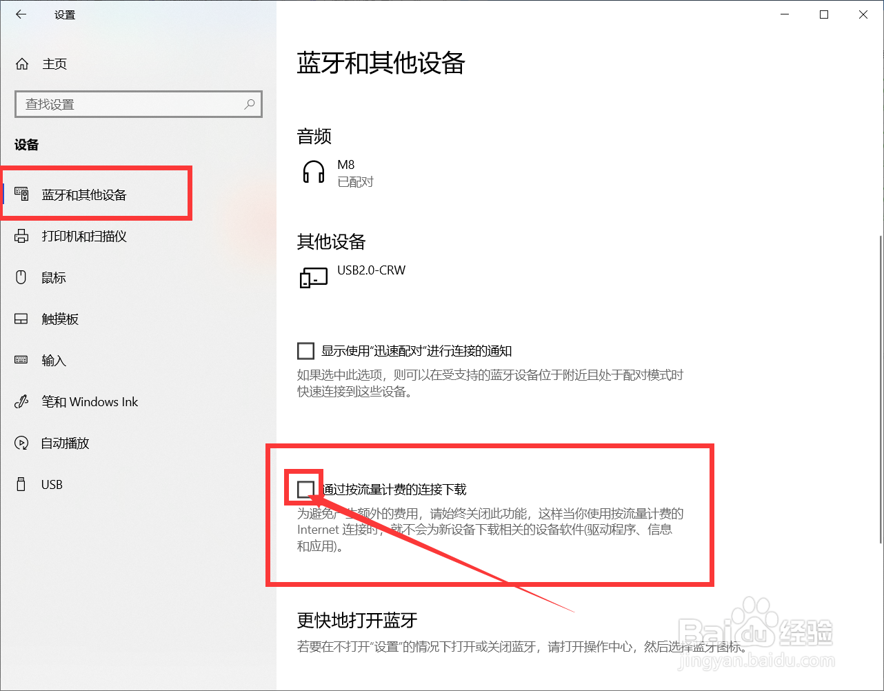 3/3最后左侧点击蓝牙和其他设备,再开启通过按流量计费的连接下载即可。