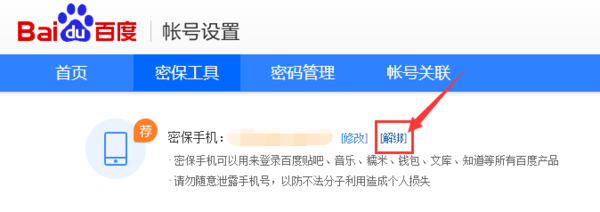 2、在账号设置页面,点击“密保工具”,找到密保手机,点击“解绑”按钮。