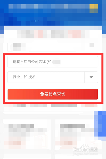 3/3最后,进入页面,输入公司名称和行业,点击免费核名查询即可。