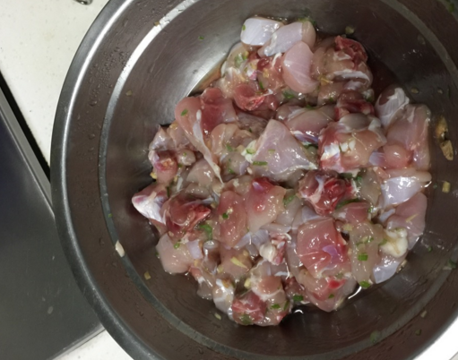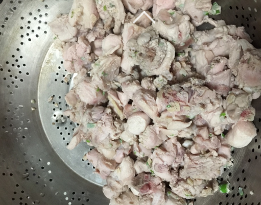 2、这是焯烫好的兔腿,一边在烧水准备焯烫,一边准备调料。
