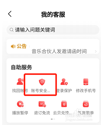 3/5第三步,进入到我的客服页面,点击“账号安全中心”服务。