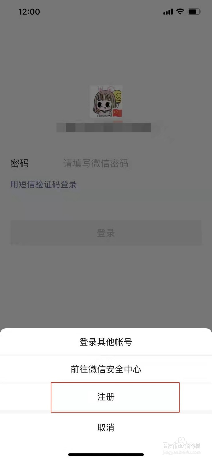 打开微信登录页面,找到下方注册选项,点击进入注册页面。