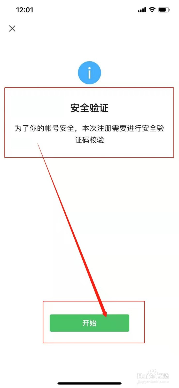 在之后出现的安全验证页面,点击进行安全验证即可注册微信号了。