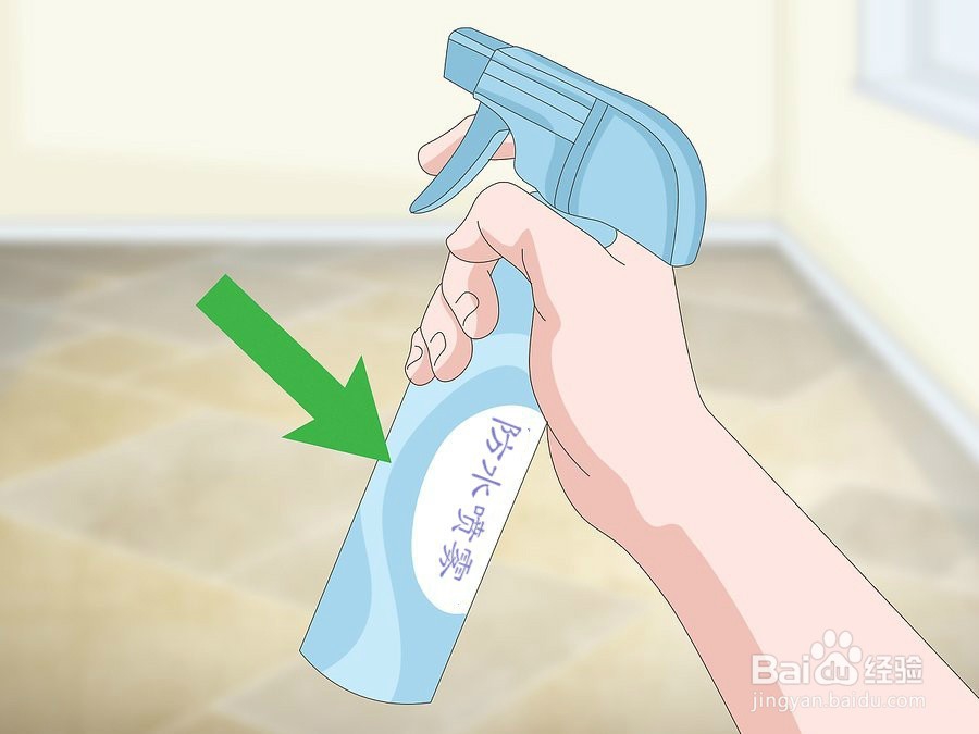 2/6购买优质防水喷雾。市面上有许多品牌和种类的防水喷雾可供选择,但是它们的作用都一样。最重要的成分是硅胶或丙烯酸聚合物。它们帮助阻挡水分,预防霉菌和其它常见的水损害。