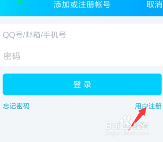3/6来到账号注册的页面,这个时候我们点击用户注册。
