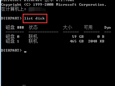 4、输入命令“list disk”,可以看到电脑的磁盘列表。