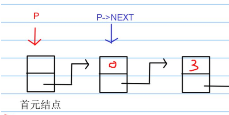 p-next表示的含义:p指针指向结构体变量的next数据域。