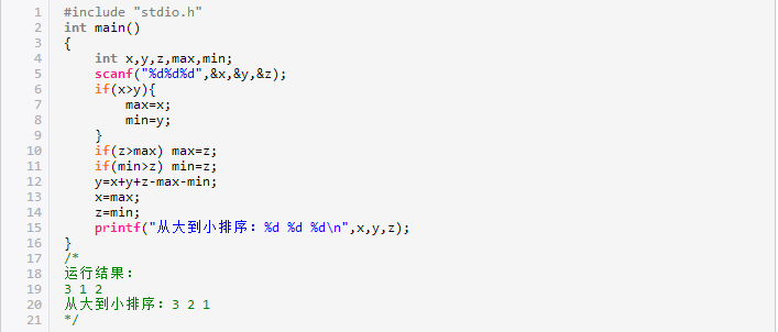 printf(从大到小排序:%d %d %d\n,x,y,z);