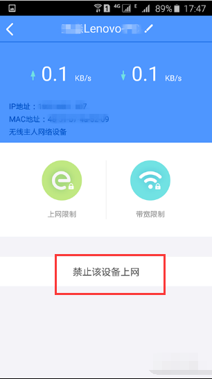 5、点击会进入详情功能,如果要提出wifi,选择红色方框中的禁止功能即可,如下图所示: