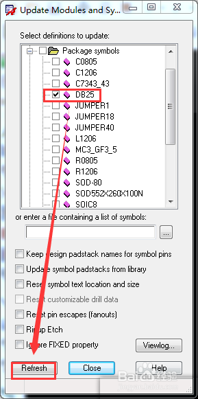 3/5下拉列表中找到需要更新的封装名称,勾选。点击refresh
