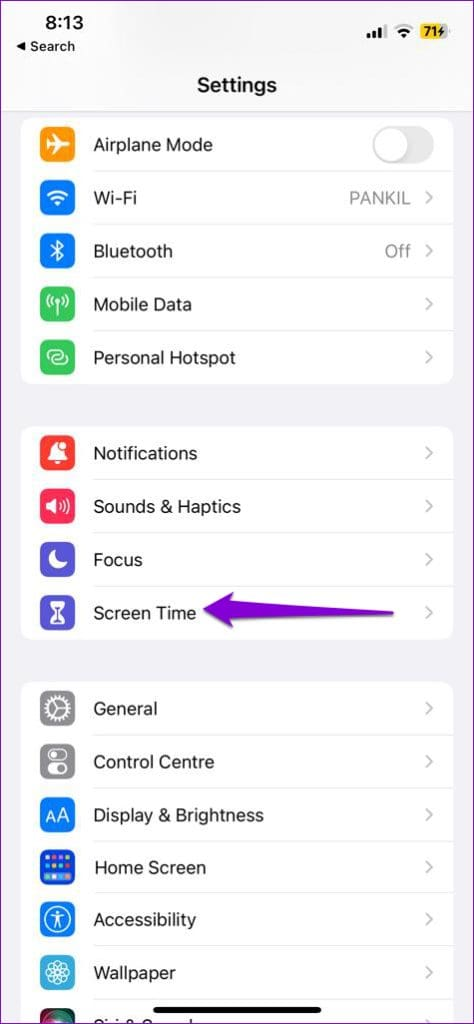 检查删除应用程序的限制你的iPhone可以让你设置各种内容限制,这样你的调皮的孩子(或其他任何人)就不会违背你的意愿做出改变。如果你过去修改过iPhone上的内容限制,你可能会意外地禁止iPhone删除应用程序。以下是如何改变这一点。1、打开iPhone上的“设置”应用程序,然后导航到“屏幕使用时间”。