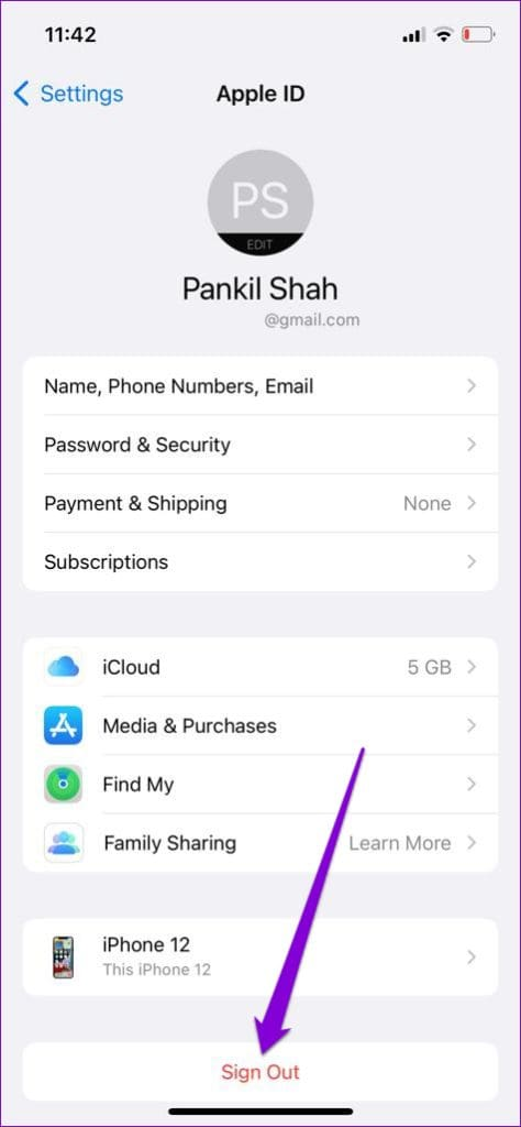 Apple ID的身份验证问题也会阻止你从iPhone中删除应用程序。解决这个问题的一个快速方法是注销你的Apple ID并重新登录。以下是相同的步骤。