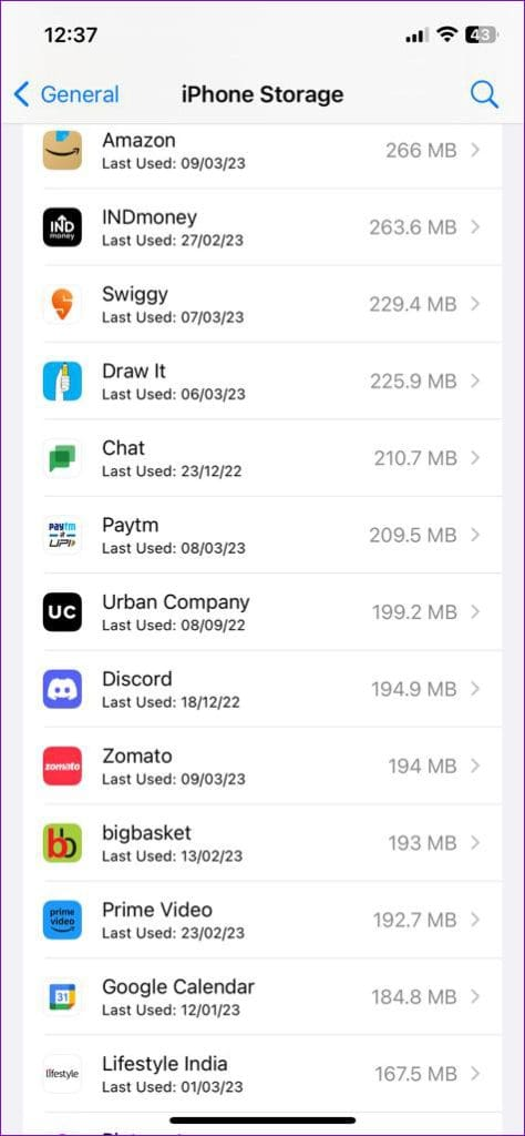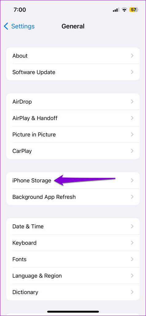 1、打开设置应用程序,点击常规,然后点击iPhone存储。