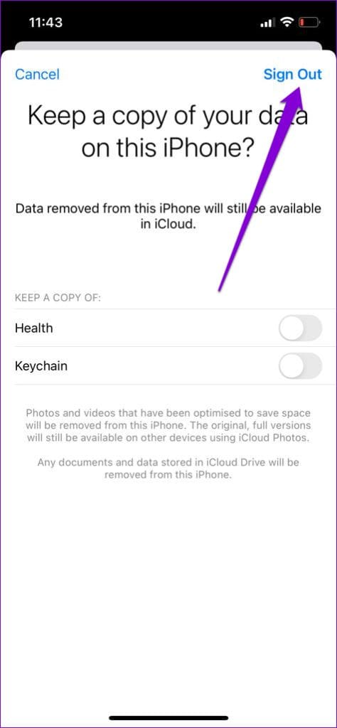注销后,使用Apple ID凭据重新登录,并检查是否可以从iPhone中删除应用程序。