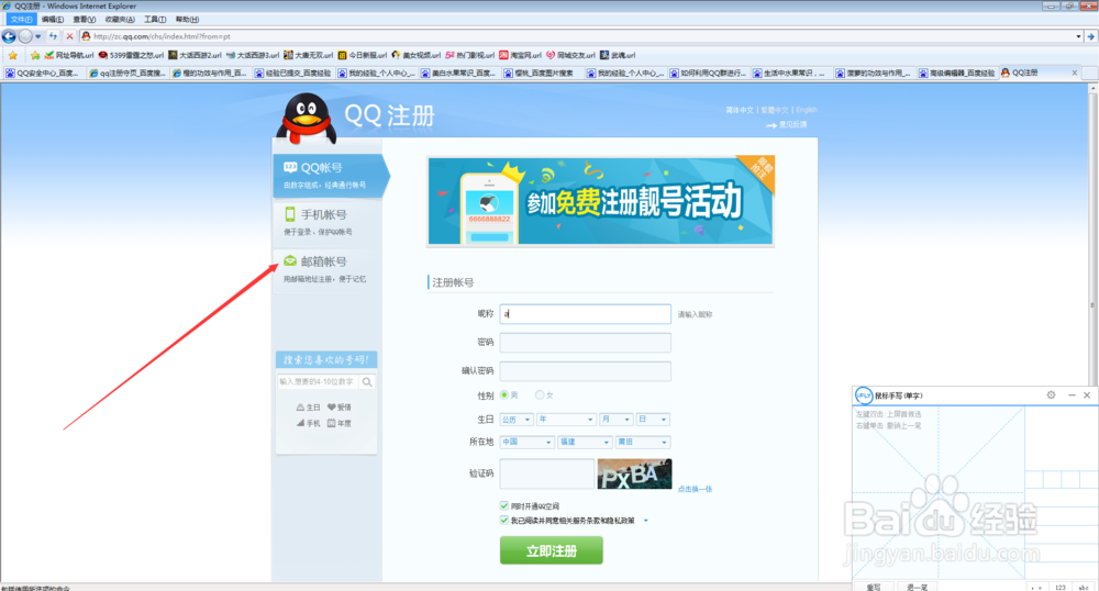方法一;登录你的QQ号,下面有一个注册。这是最常见的办法了。