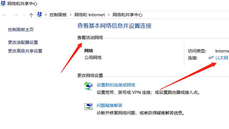 2、如果上述过程都正常,那么接下来再确认网卡是不是正常的,点开“控制面板”里的“网络和共享中心”里面有没有“本地连接”这个选项(本人这里是以太网,并不影响);