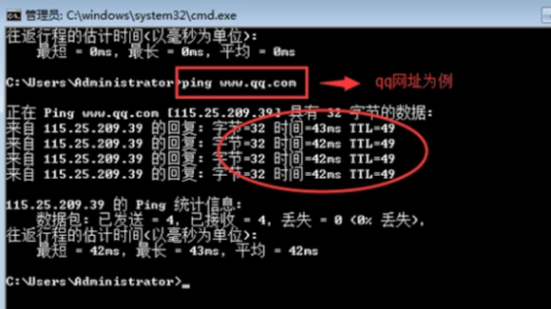 7、现在就ping一下任意外网(以qq网址为例),如果ping不通外网(qq网址),此时问题应该是出现在路由器的设置上,检查一下路由器是否获取到了外网ip;