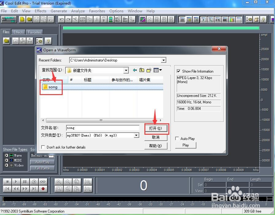 3/7将音乐导入到cool edit pro中;