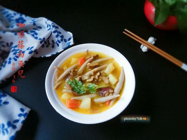 12/21舀上一勺热卤,浇到面鱼上,面鱼劲道滑爽,汤汁咖喱浓香,很过瘾哦!下面介绍做咖喱土豆牛肉卤的方法。